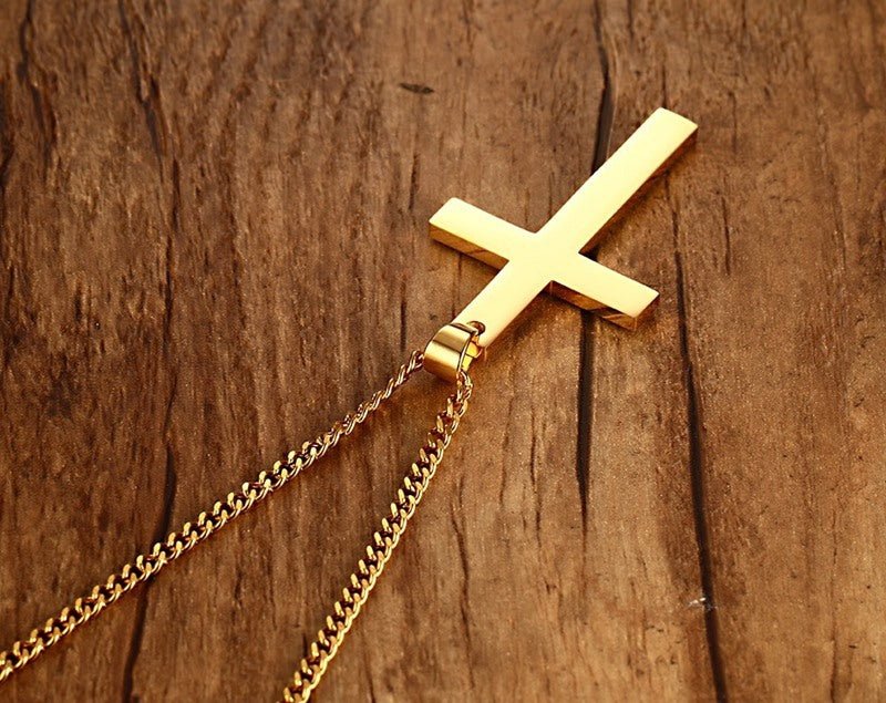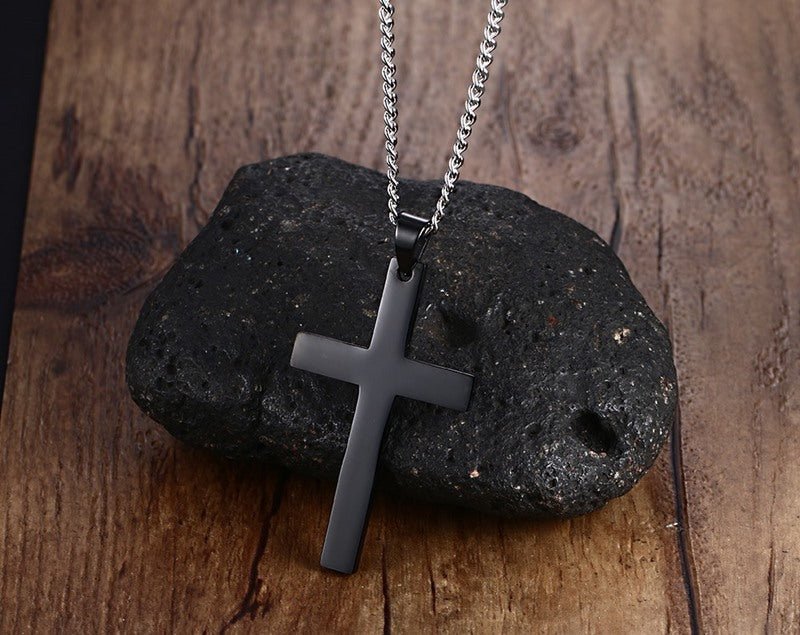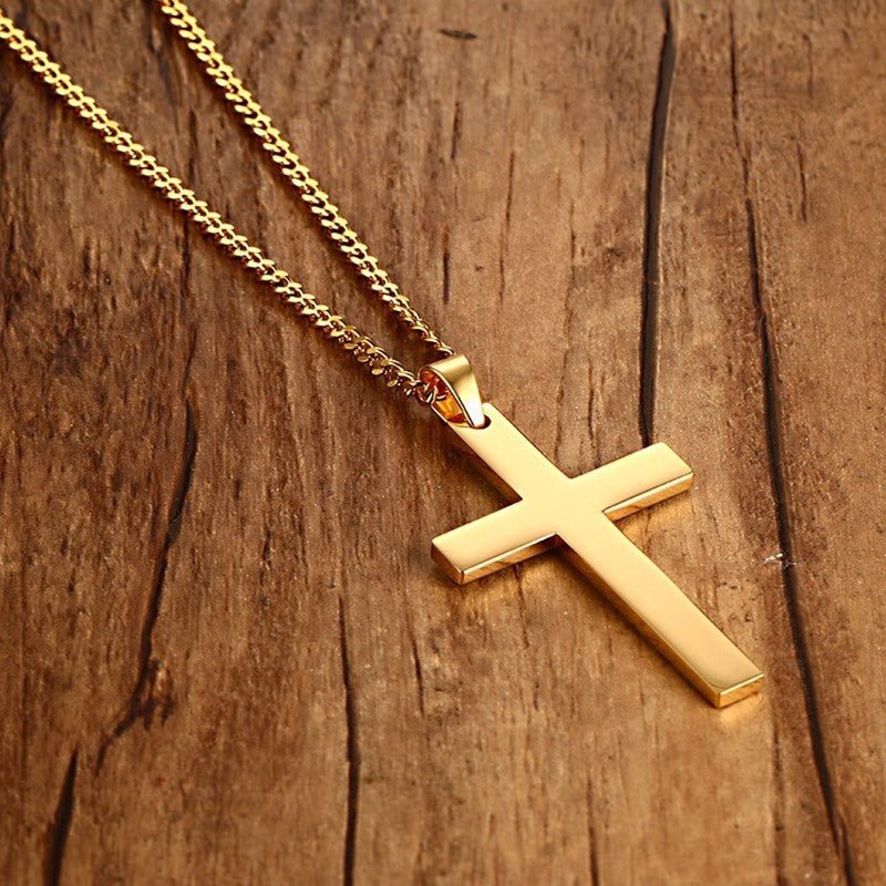 Stainless Steel Cross Pendant Gold Sweater Necklace Black Foreign Trade Accessories Jewellery Accessories Wholesale PN-572
