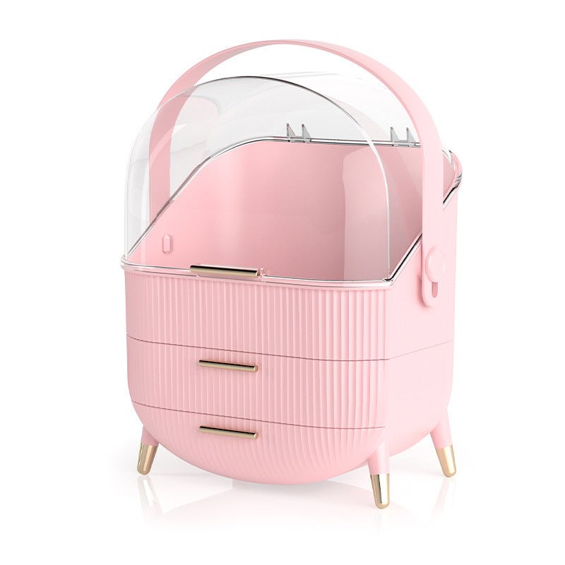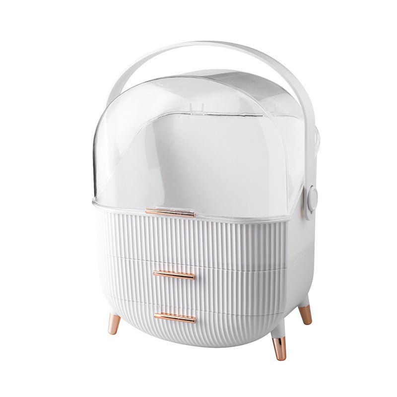 Appearance and size:28.6cmL×18.5cmW×37cmH,Large capacity makeup organizer with 2 drawers,top apartment,even a 20cmH bottle of skincare can fit in