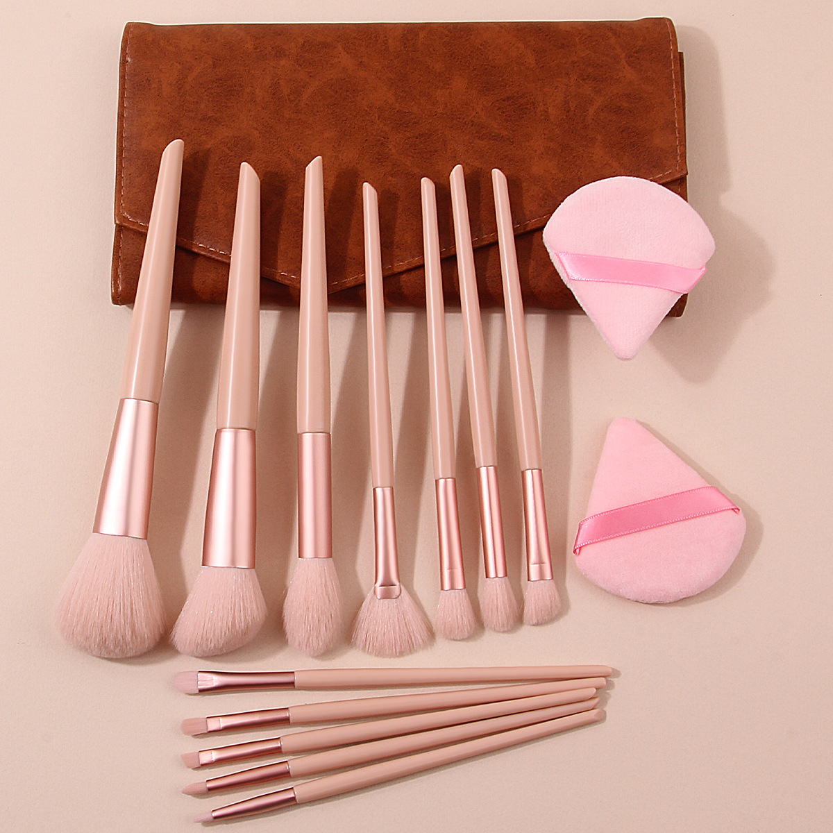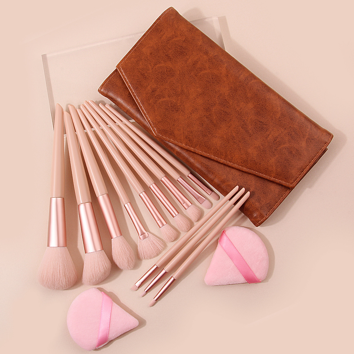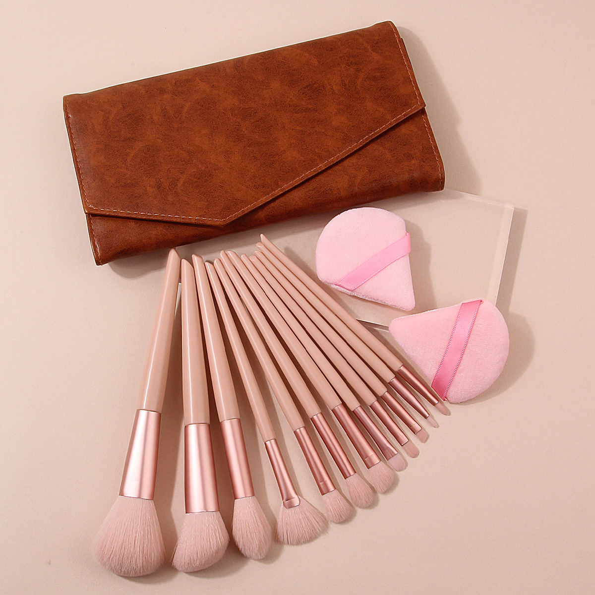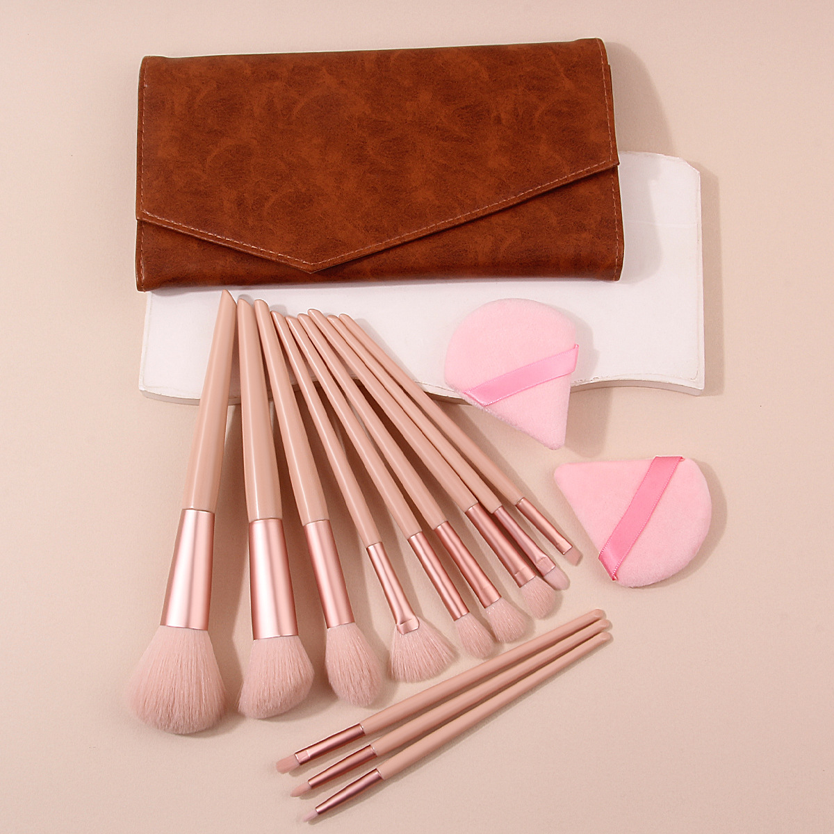 Color: 12 pieces light pink brush suit 2 pink triangle brown envelope package, 12 pieces light pink makeup brush set brush suit, brown envelope package